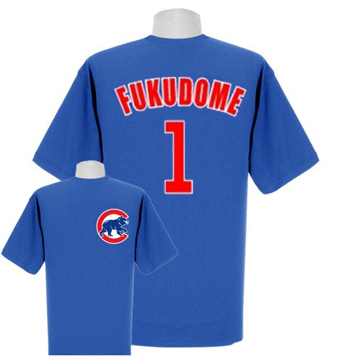Note: Finally! They Have Arrived!Sport your favorite player with this Chicago Cubs player t-shirt. The team-colored jersey displays the team logo screen-printed on left chest, with the Kosuke Fukudome name and number screen-printed on the back just like the real jerseys.Features: * 100% Cotton * Screen printed graphics * Player name and number on back
